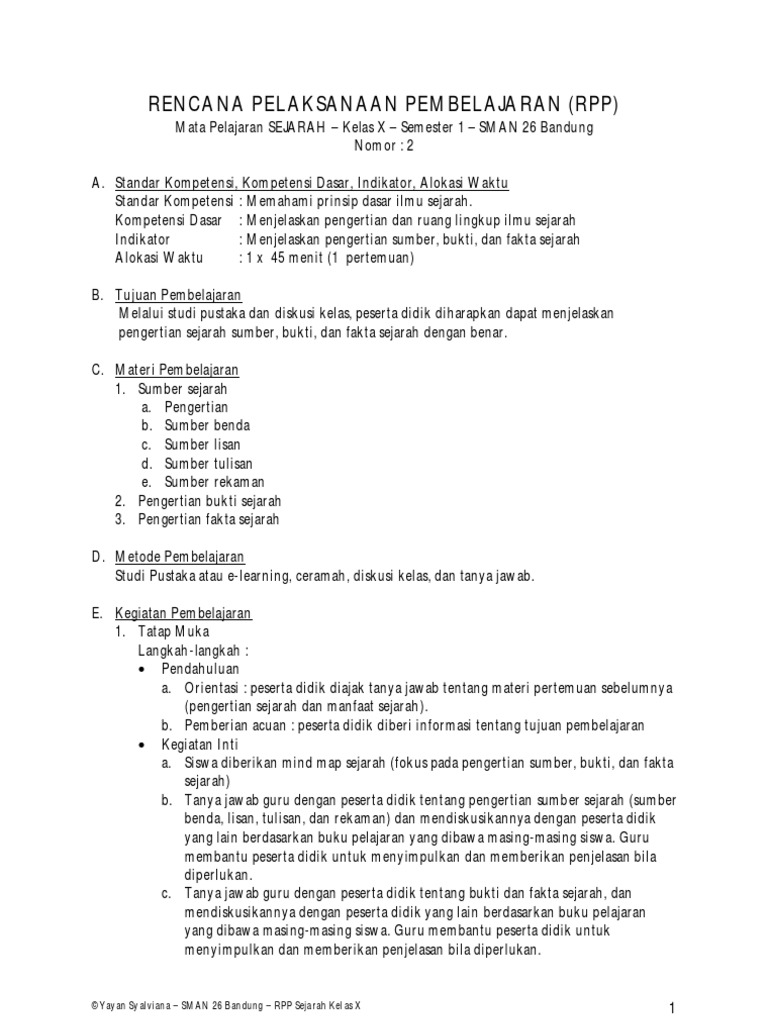 Susunan dan poin dalam rpp kurikulum 2013 sejarah indonesia 1 halaman kelas x ini memang bisa dikatakan cukup sederhana dan simpel. Rpp sejarah indonesia sma kelas x k13 revisi 2017. Silahkan download rpp sejarah indonesia sma kelas x k13 revisi 2017 semester 1 dan semester 2 dengan mengklik beberapa tautan yang kami sediakan. Rpp berikut menggunakan discovery learning.melalui pembelajaran discovery learning tentang konsep berpikir kronologis, diakronik, sinkronik, ruang, dan waktu dalam sejarah siswa diharapkan dapat menjelaskan, memahami, membiasakan, dan menganalisis konsep berpikir kronologis, diakronik, sinkronik, ruang, dan waktu dalam sejarah. Siswa membuat karangan analisis mengenai tuntutan mengkaji dan menulis kembali sejarah indonesia (analitika hal 23).